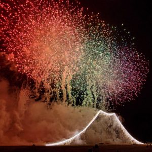 今回で50周年を迎えた江戸川花火大会は「最も高い山型の仕掛け花火」で