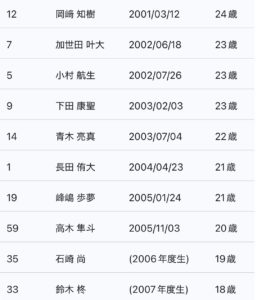 ここにいる選手を年齢順に並べてほしいとお願いしてみました。