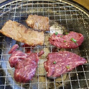 七輪で焼いたお肉から肉汁がジュワ~~~