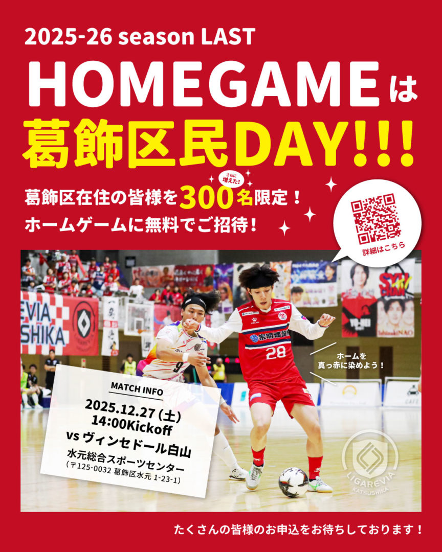 ホーム最終戦を「葛飾区民デー」として開催 いたします!