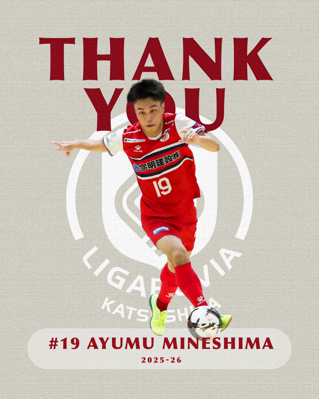 No.19 峰嶋 歩夢 選手が今シーズンを持ちまして退団することとなりましたのでお知らせ致します。