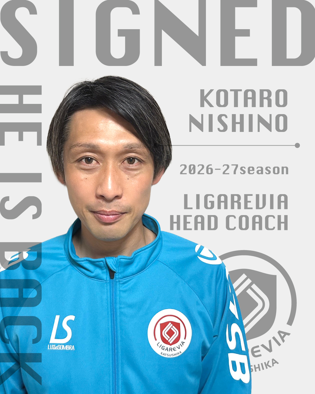 このたび、リガーレヴィア葛飾の監督に就任することになりました、西野宏太郎です。